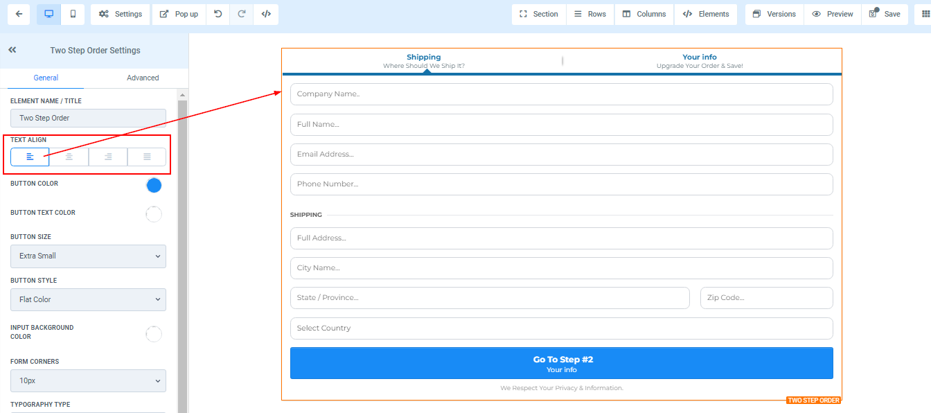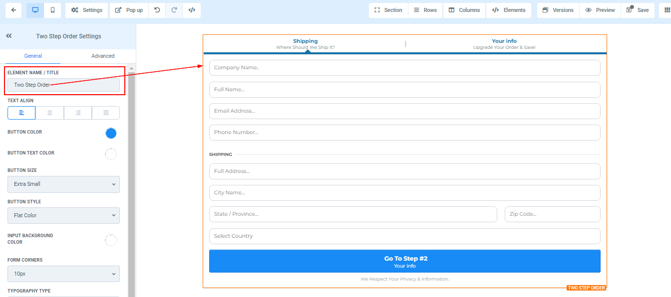 You can use this element to get the shipping detail of your customer and some other information. For 2-Step Order Form, you will have the Shipping details and the information in two separate forms.