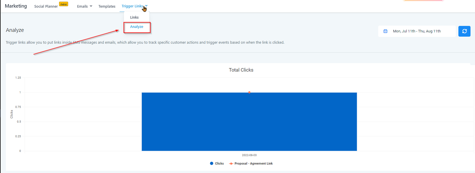 Here you will see all of the Trigger Links you have created in your CRM. To analyze any of the Trigger link from the list,