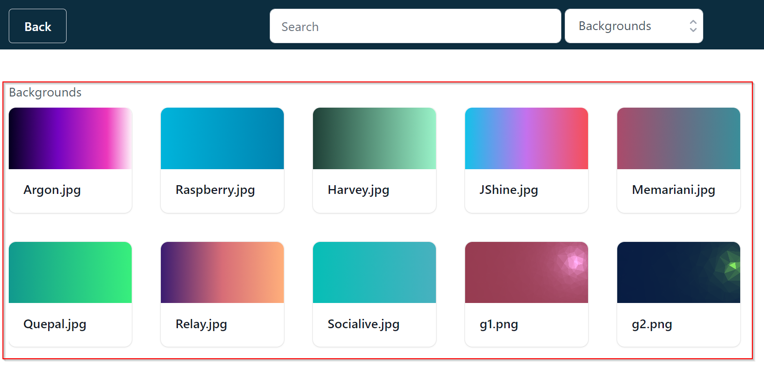 In order to use Backgrounds, click the navigation drop down and select Backgrounds.