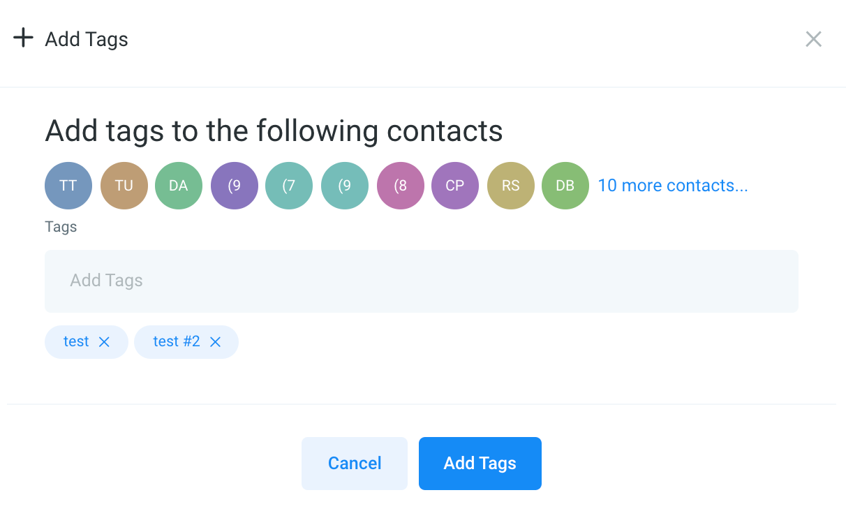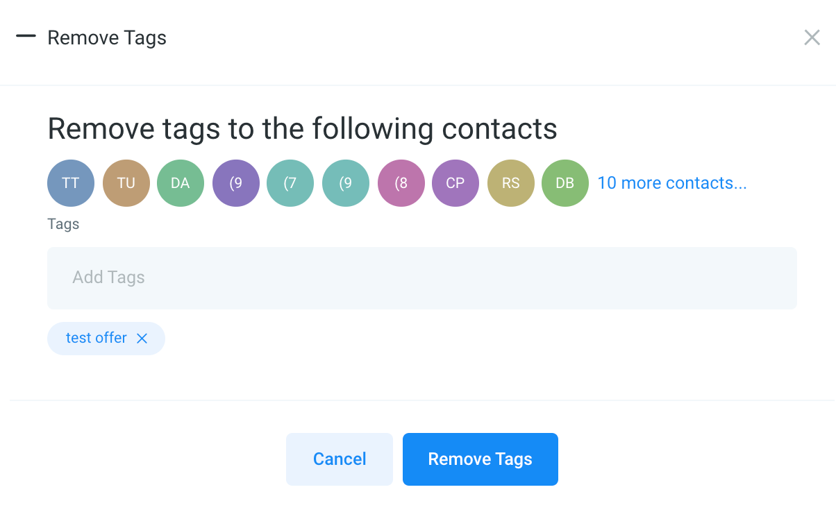 - Then click “add tags” to add them to contacts, or “remove tags” to remove them.
