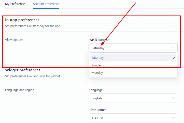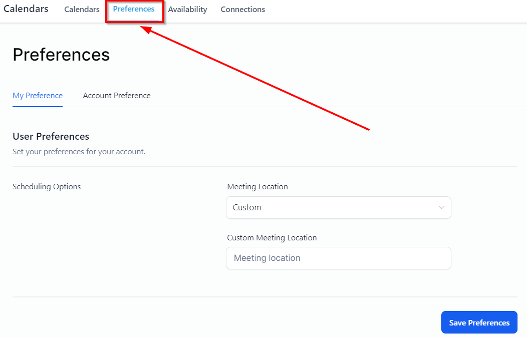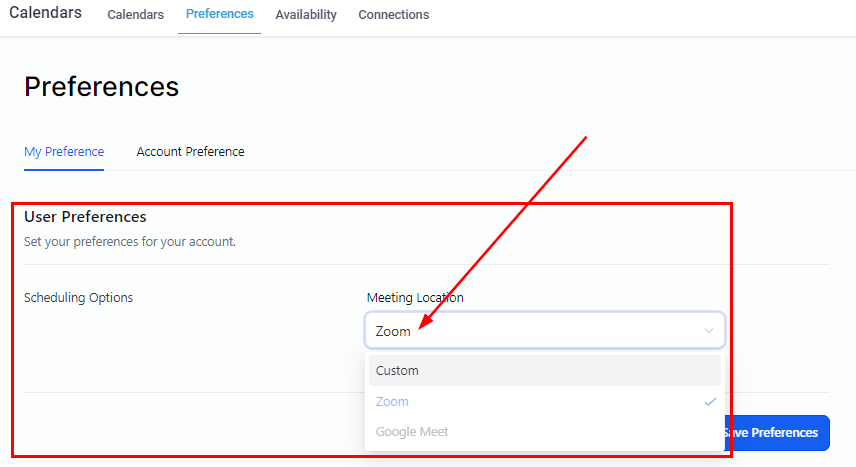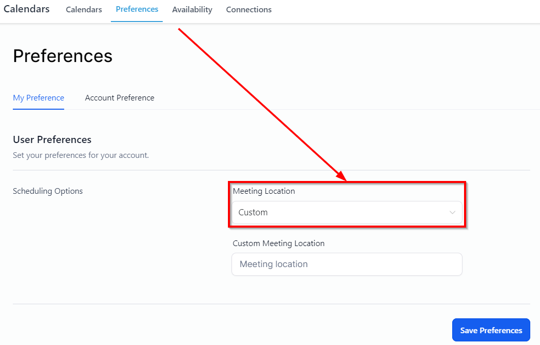 Calendar preferences give you the ability to change specific parameters around Meeting location, time, and language.