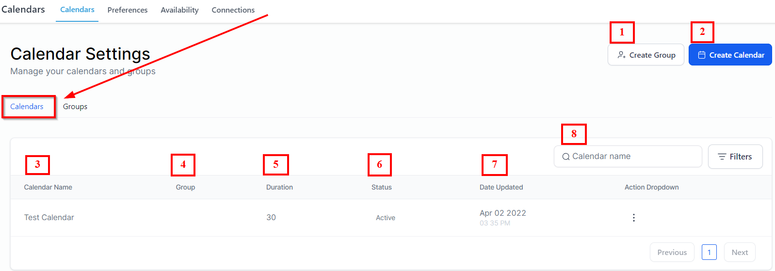 Calendar Name ****Here you can see the name you have given to each calendar you have created in the system.
