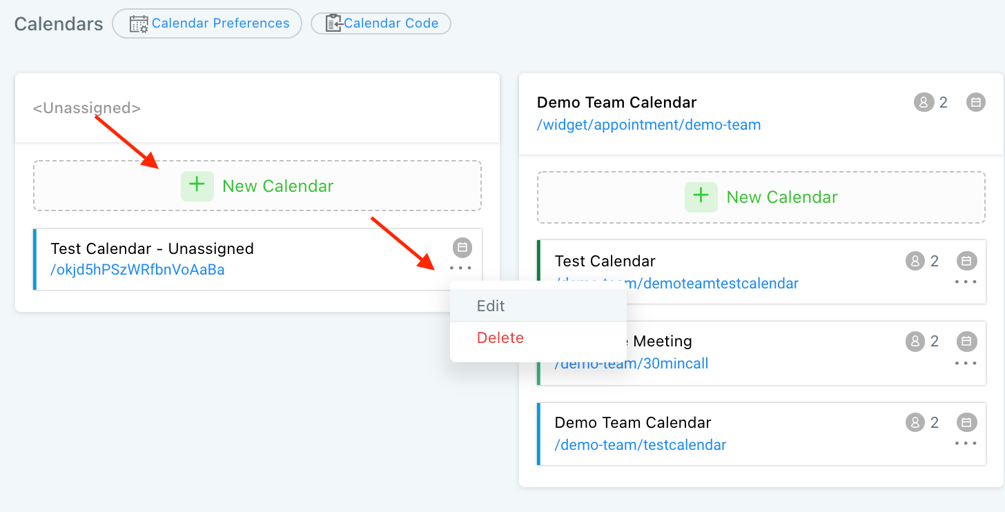 - Click “New Calendar” to create a new calendar, or click the … and choose edit to update an existing calendar.