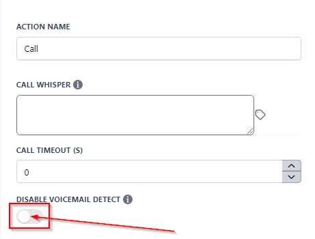 To be able to leave a personalized voicemail with our Call event, toggle it on by clicking on the Disable Voicemail Detect.