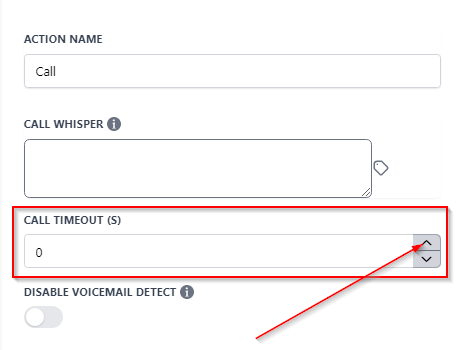 You can select the call timeout by clicking on the up and down button on the right side of the box.
