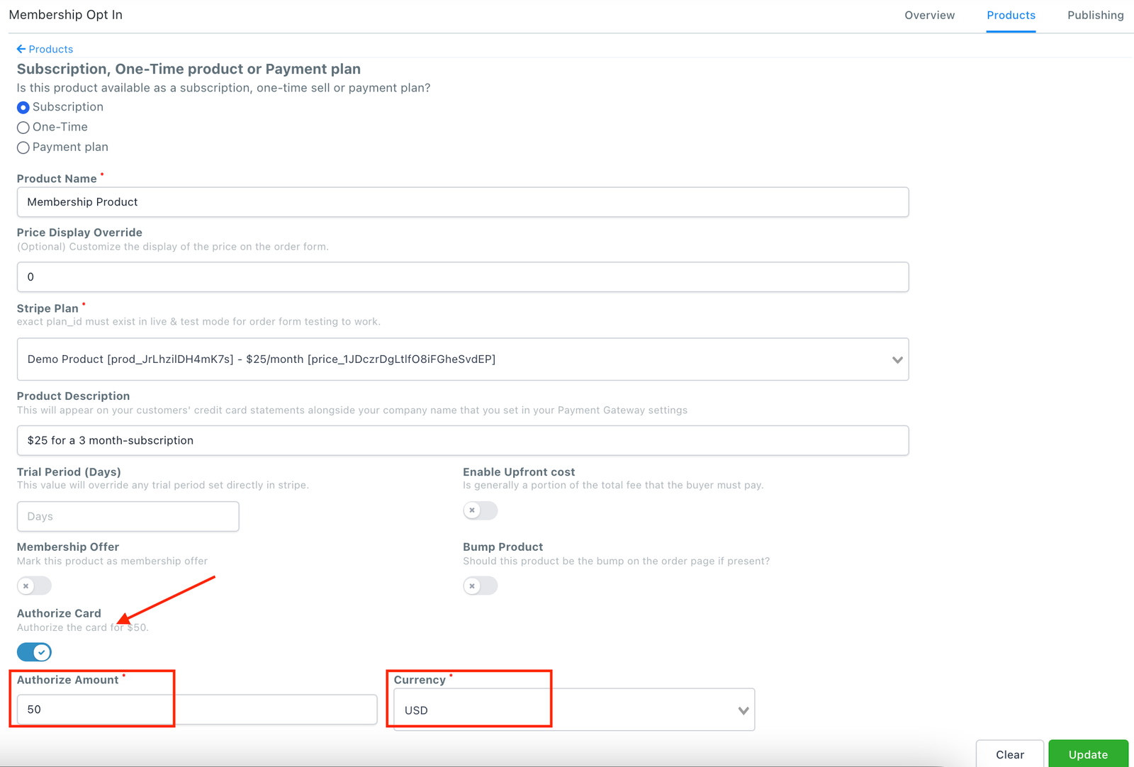 For example, maybe you have a 7-day free trial, and then on the 8th day, the purchase price of $100.00 would be due. If you don’t have the authorization feature turned on, then the 7-day free access could still be granted, even if the system knew that the $100.00 wasn’t available in the account, to be charged after the trial period. With the authorization turned on, the system will check to ensure they have the amount of money available, even though it won’t be collected until the 8th day. The system would only grant the free 7-day trial if the $100.00 was available in their account.