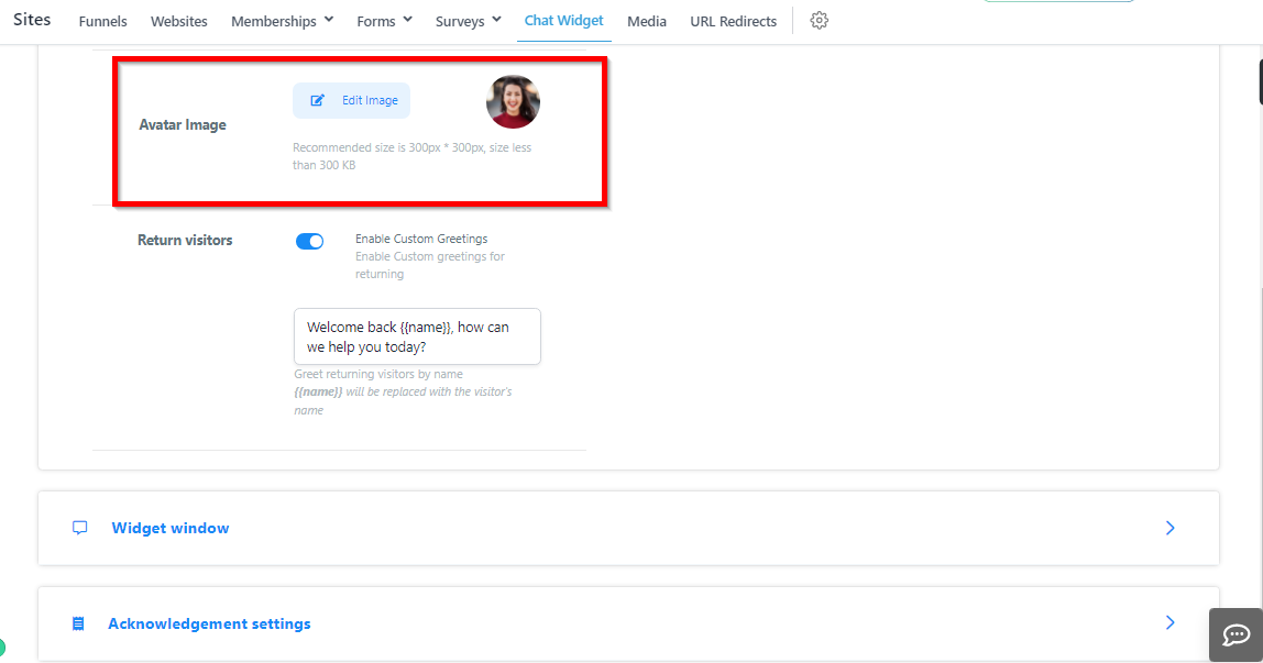 Here you can change the image website visitors see when they interact with your chat widget. We recommend that you either add your company logo or a friendly face!