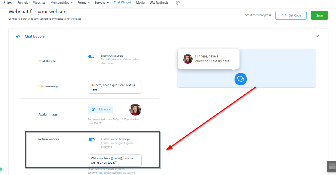 If you are tracking visitors on your website, you can create a custom message for return visitors and tailor the message to be more personalized.