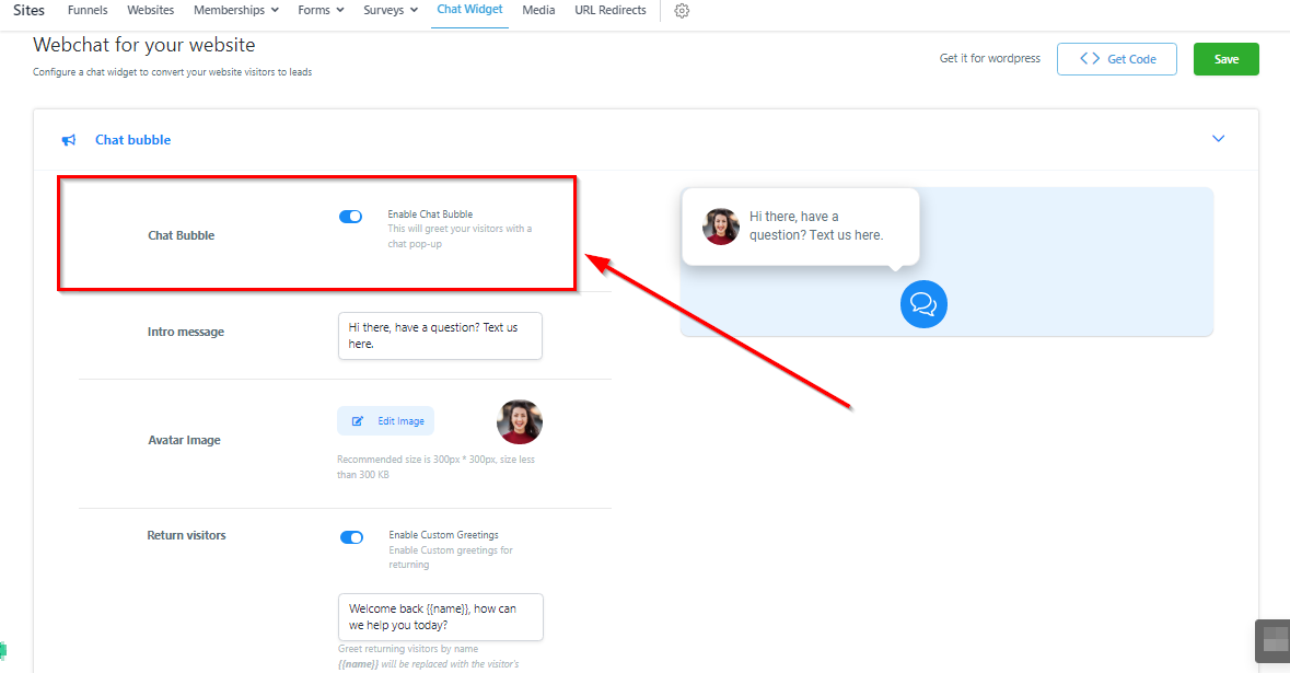 Enable Chat Widget