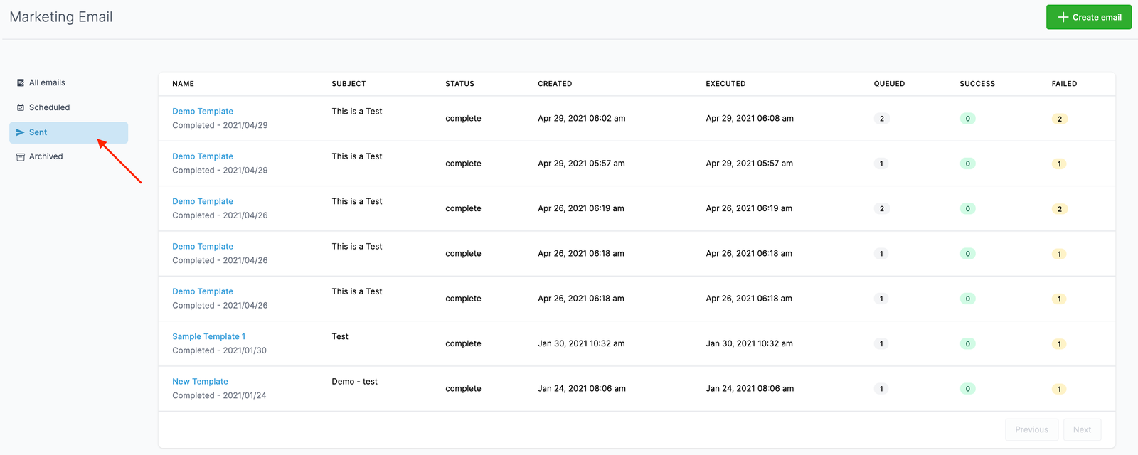 - Navigate to the Email section. By default you’ll be on the “All emails” tab.