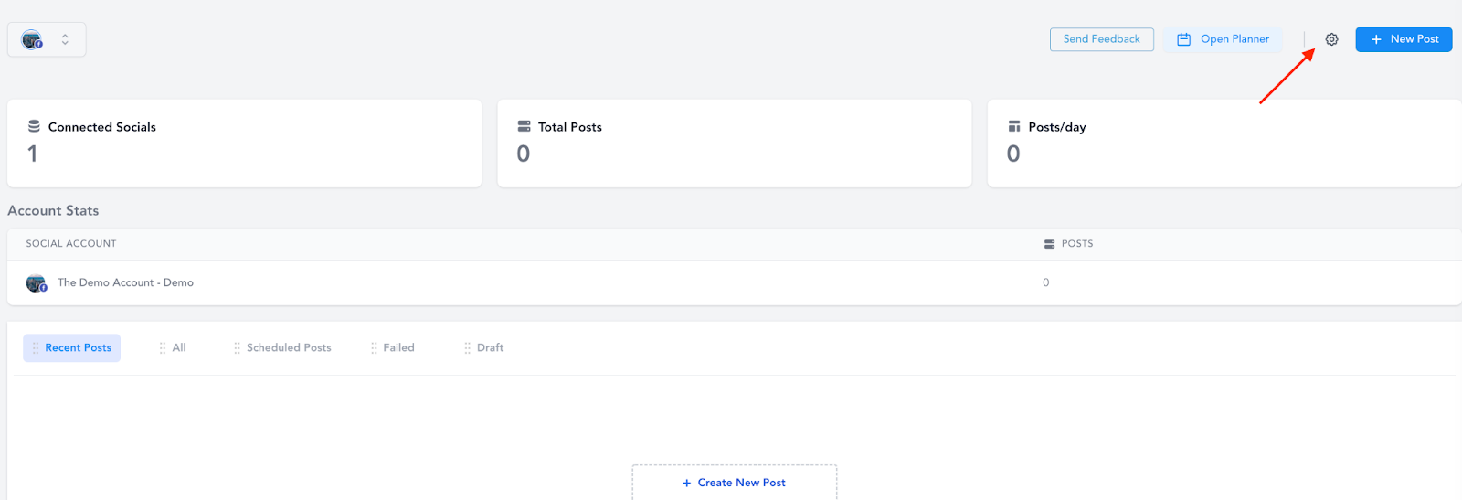 - After visiting the social planner the initial time, you can access the Settings via the gear icon in the top right to make additional changes and add/remove accounts.