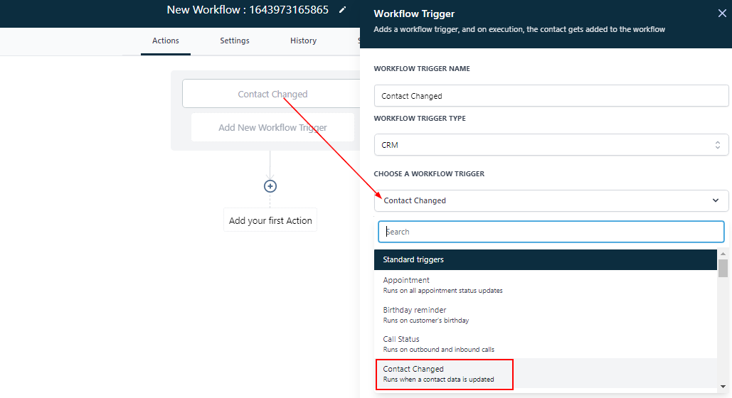 When you select the “Has changed “ filter option, this workflow will trigger when the DND status of a customer changes. The status can either change to “DND enable” or “DND disable”.