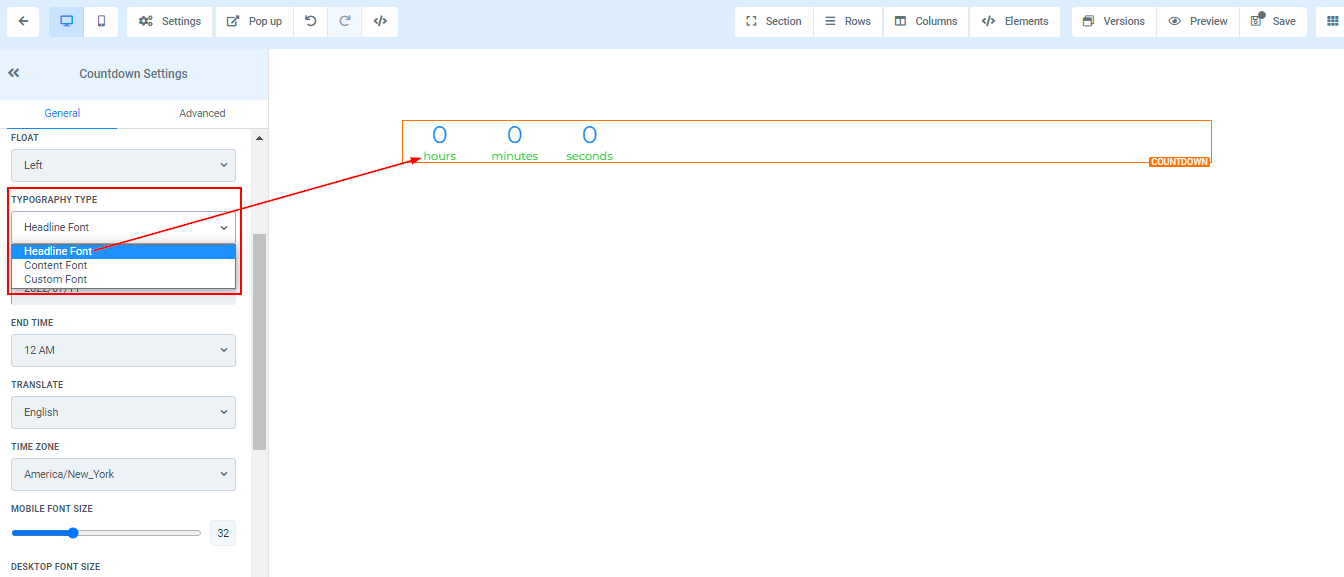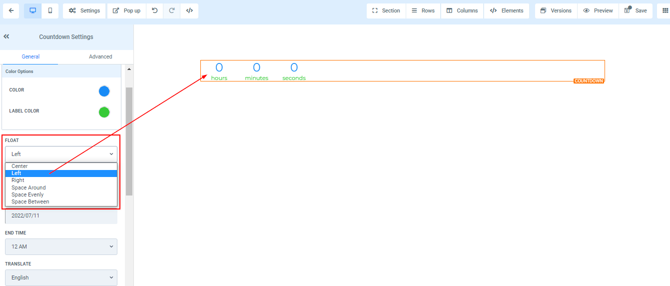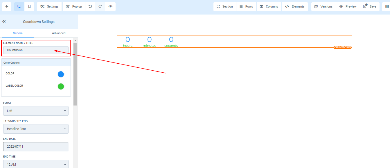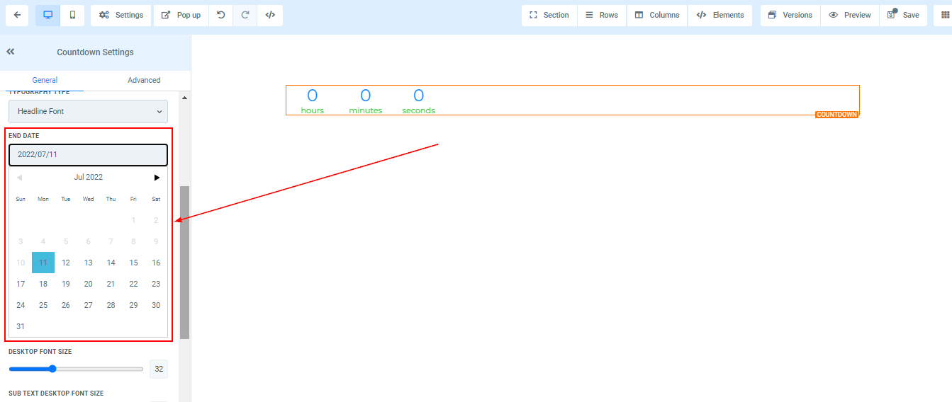 Here you can set the date and time you want your countdown to end. For instance, you can set the date and time for the timer to end on the 11th of July at 6am.