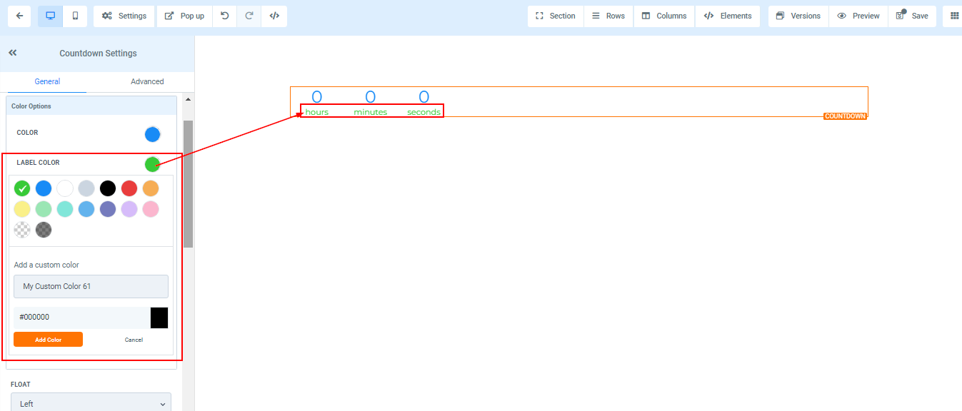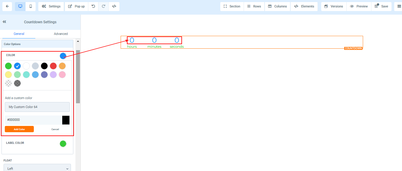 If you want to change the **** color of your timer label, you can do that by clicking on the color you want.
