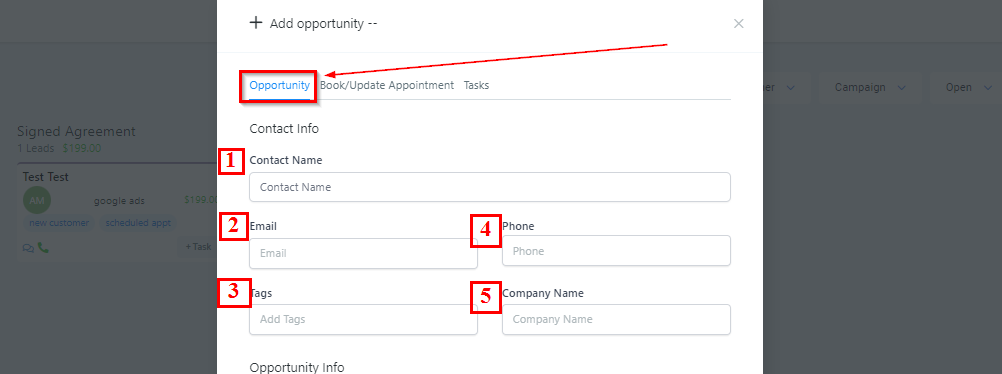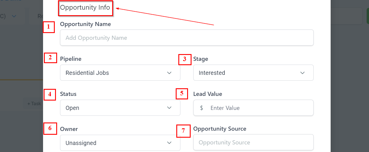 This is the section where you can create new opportunities from scratch. In most cases, you will be creating opportunities using automation, but it is important to know how to create them from scratch as well.