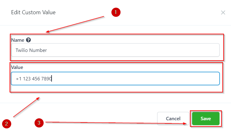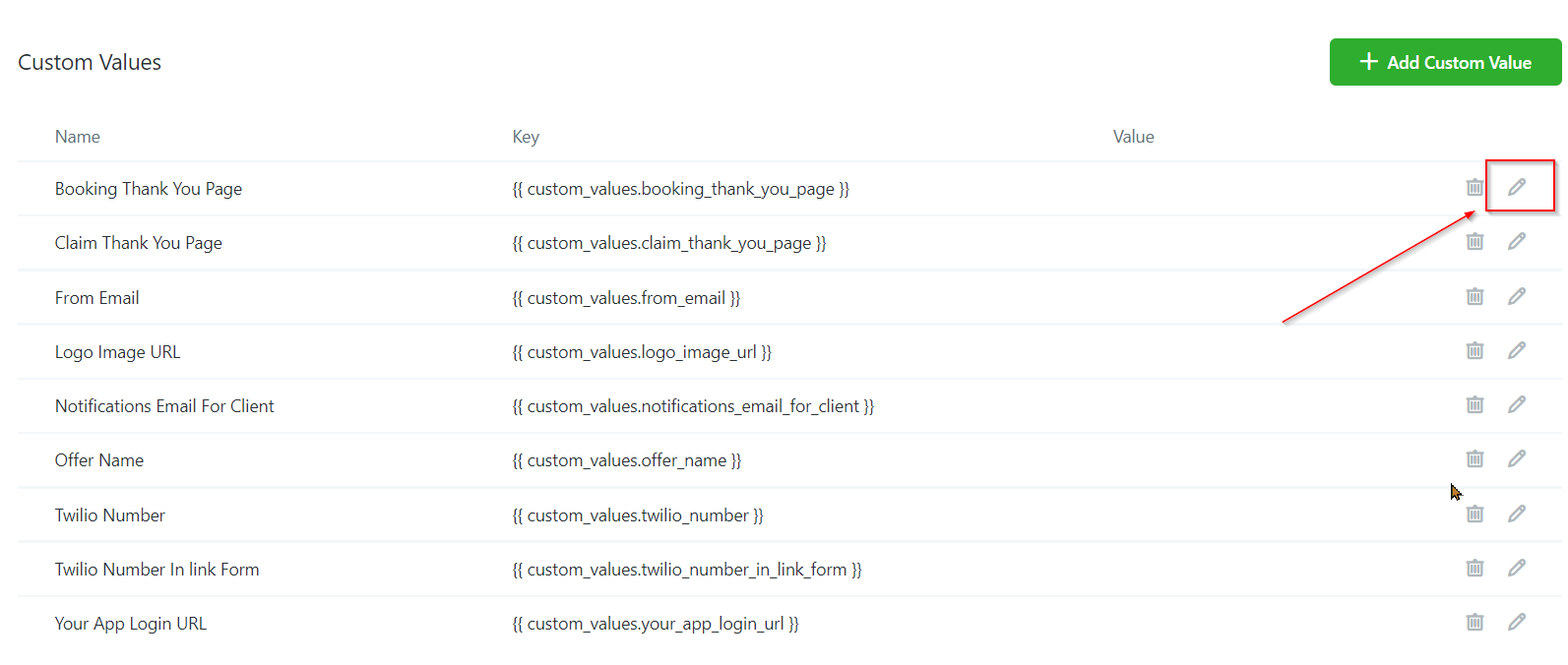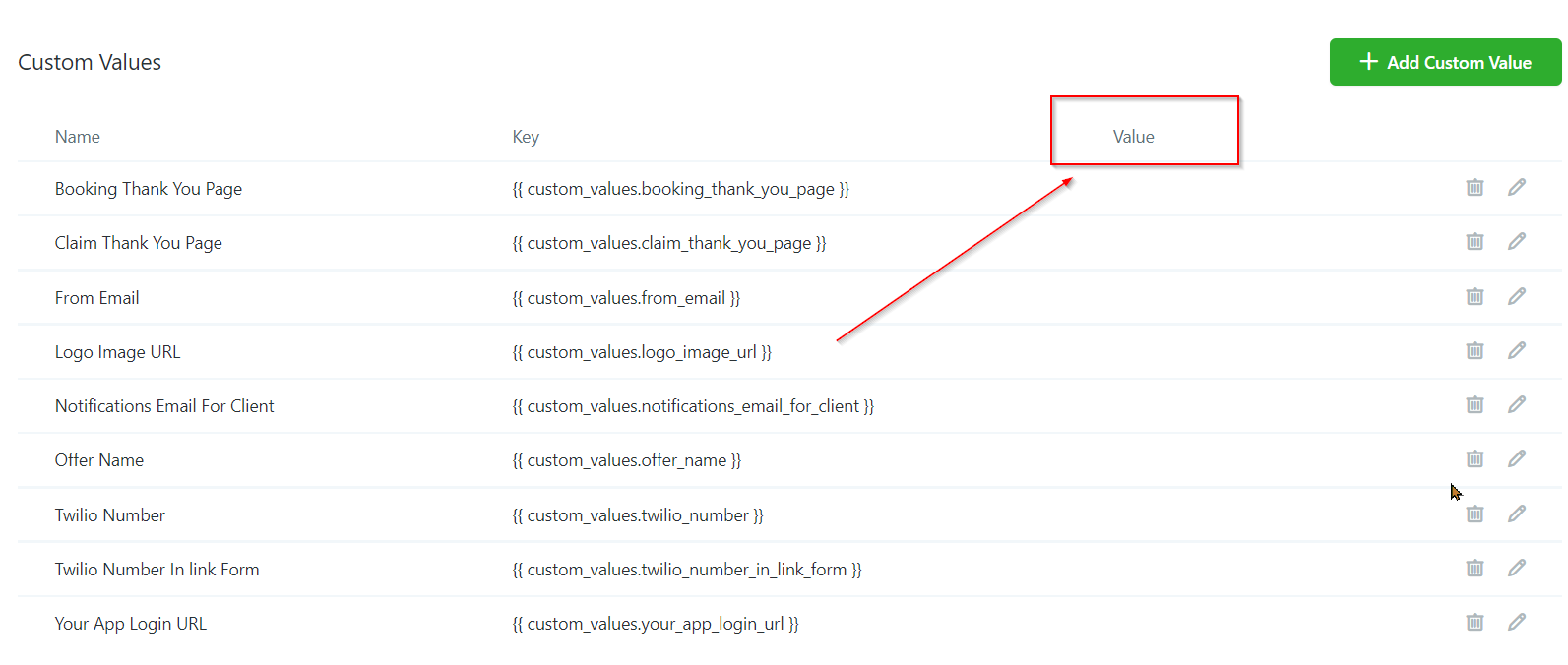 Value refers to the information you would like the system to populate when you select a particular custom value. User need to fill this information based on their objective. If you have a custom value with the name and you want your system to use one of your phone number then you would need to first add the phone number for the system to use it.