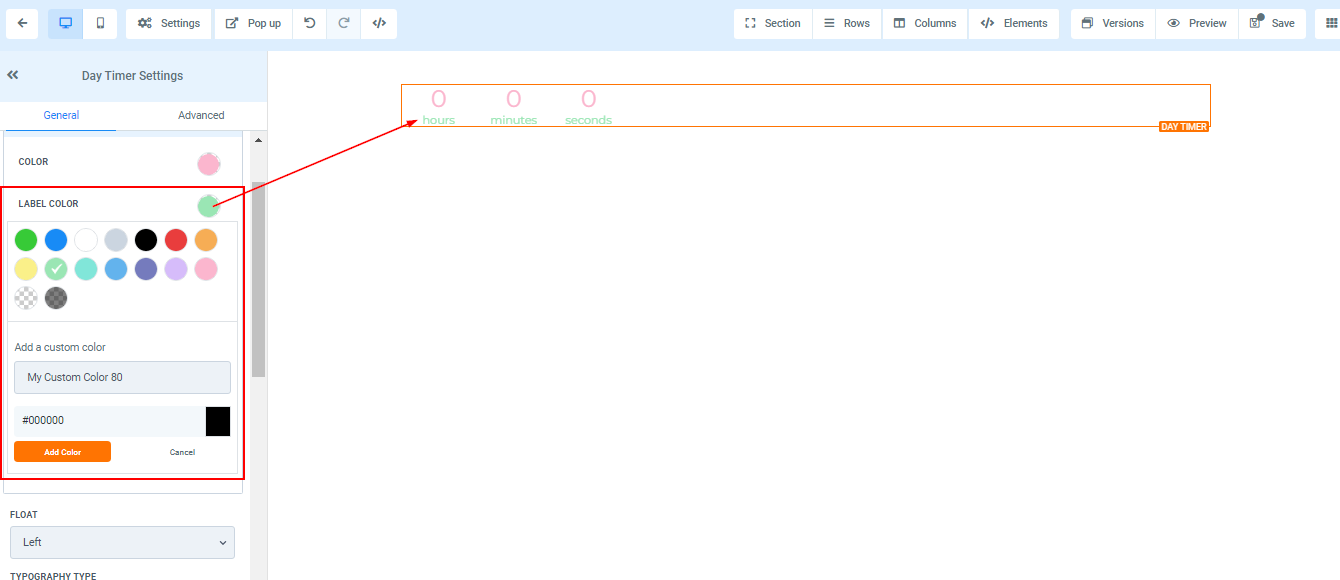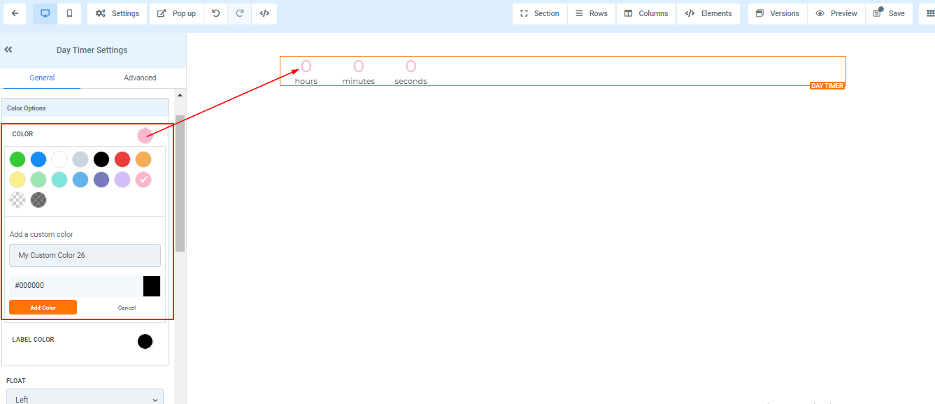 If you want to change the **** color of your timer label, you can do that by clicking on the color you want.