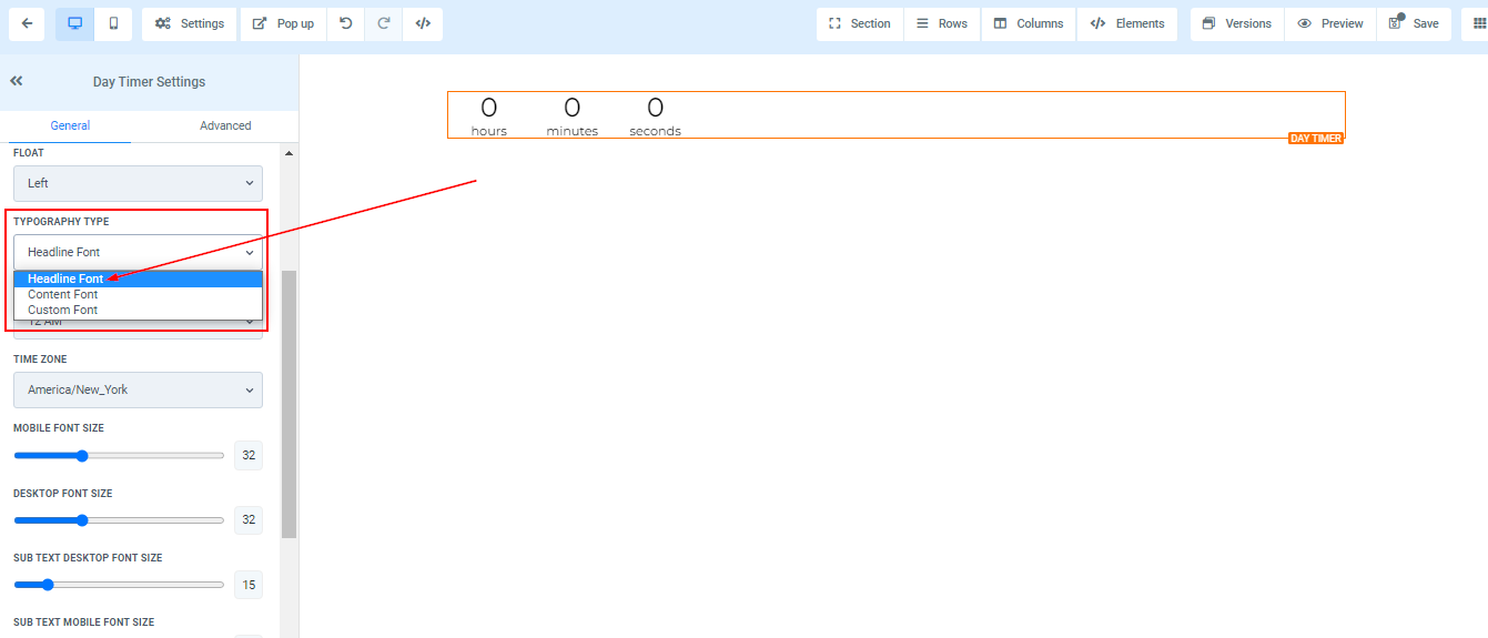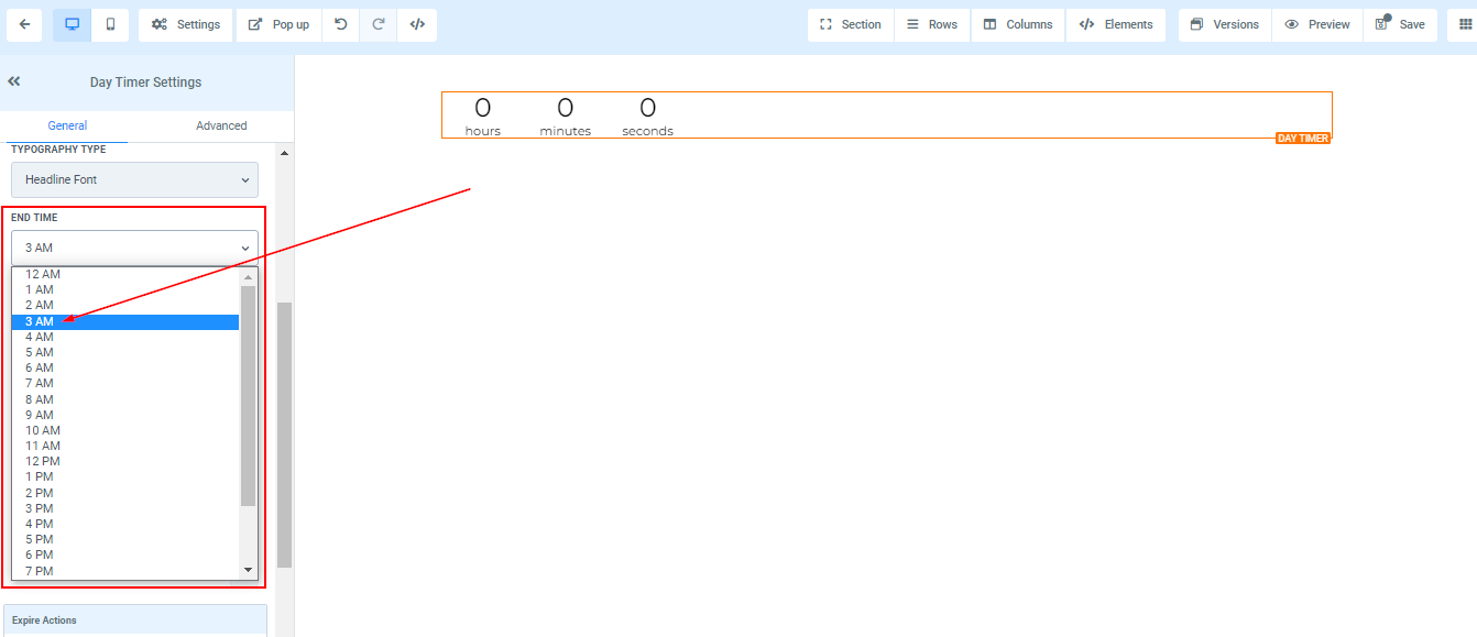 Here you can set the date and time you want your countdown to end. For instance, you can set the date and time for the timer to end on the 11th of July at 6am.