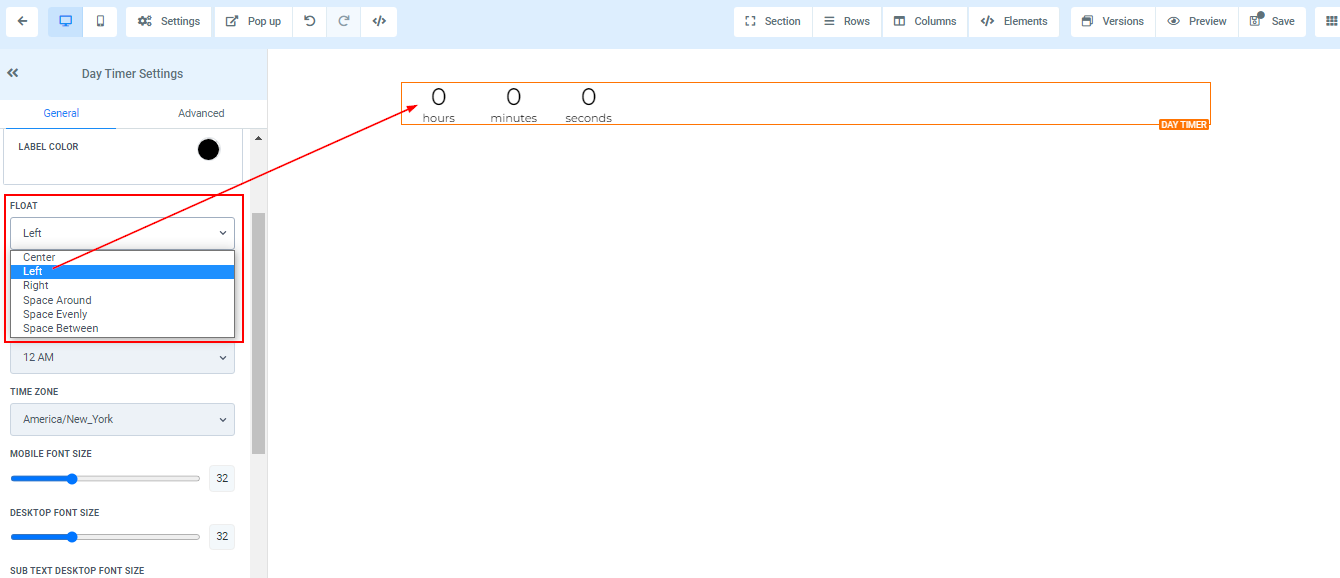 You can move your timer in different positions as you deem fit, you can position it to the Left, Center, Right, space around, space evenly, or space between.