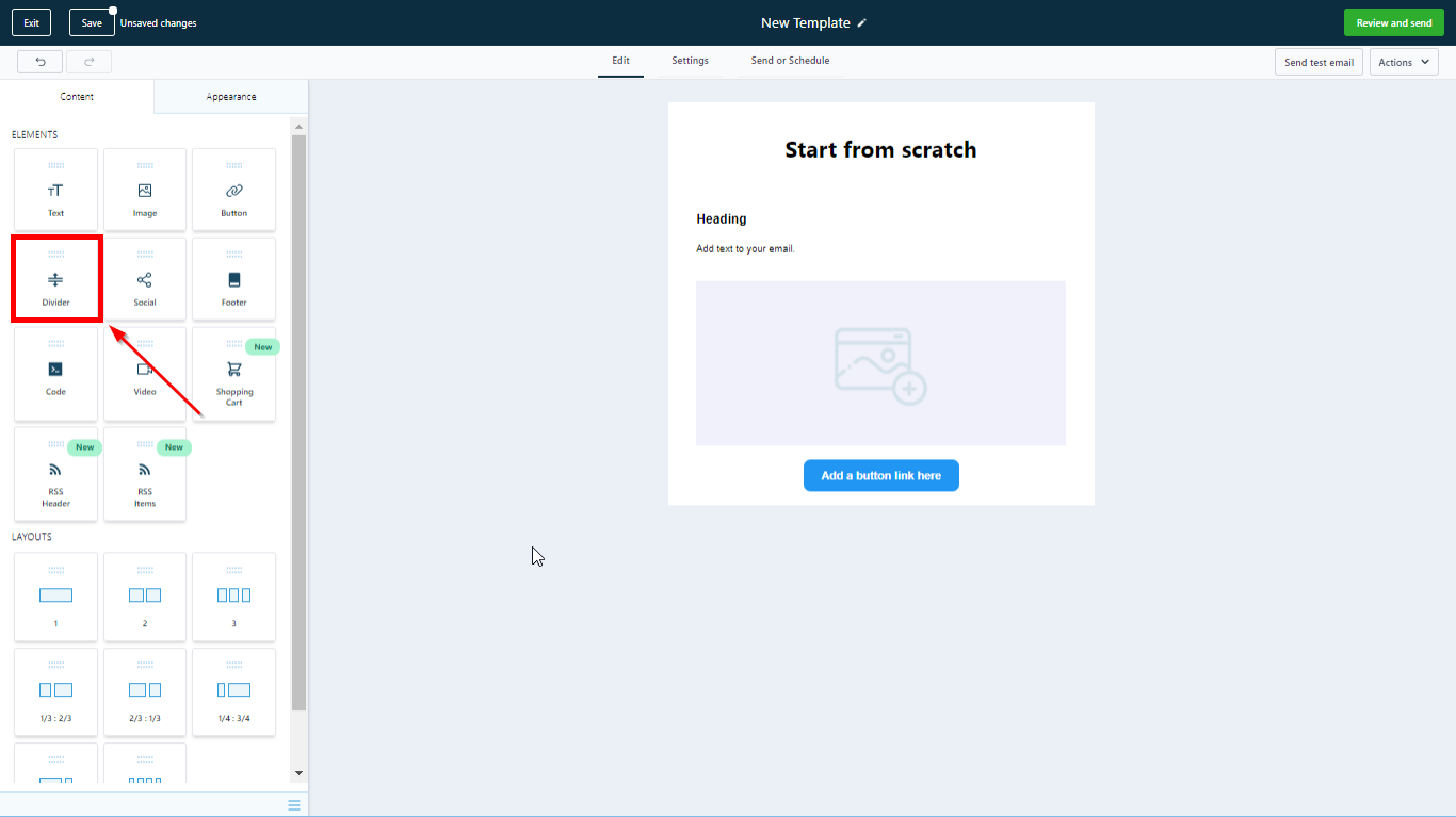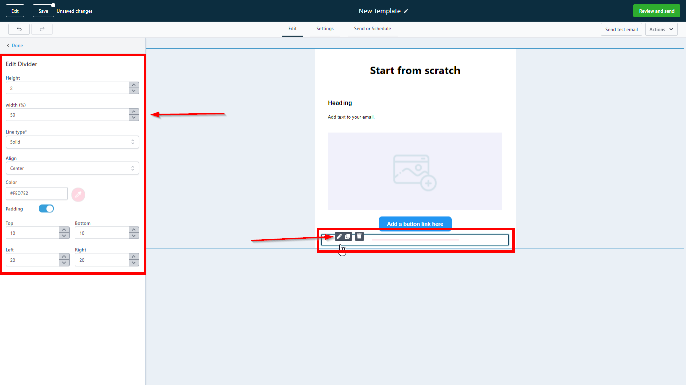 As usual, after you drag and drop the Divider element to your email builder, simply click on the pencil icon in the Divider element of email builder to access its settings.