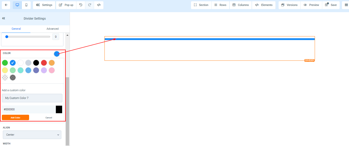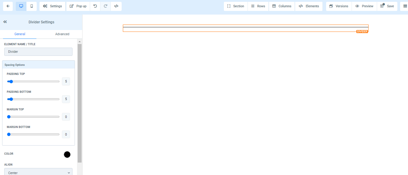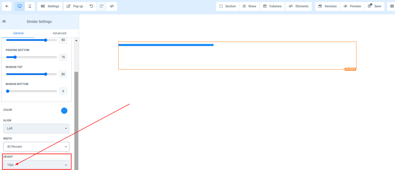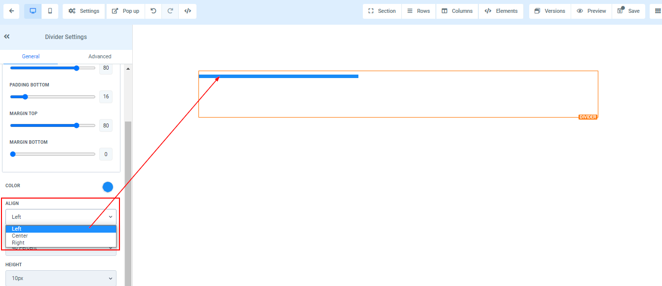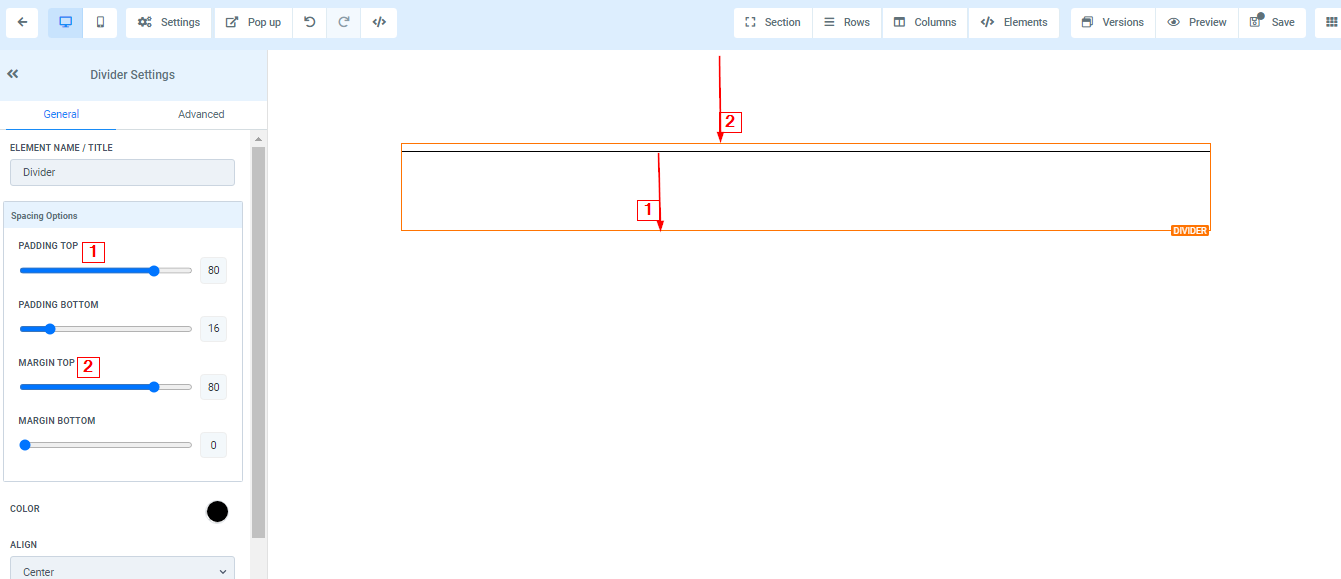 Margin Top and BottomYou can adjust the top or bottom margin of your content by toggling its bars.