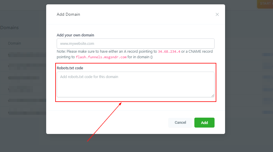This is not required, but if you have robots.txt code that you want to add to this domain, you can do so here.
