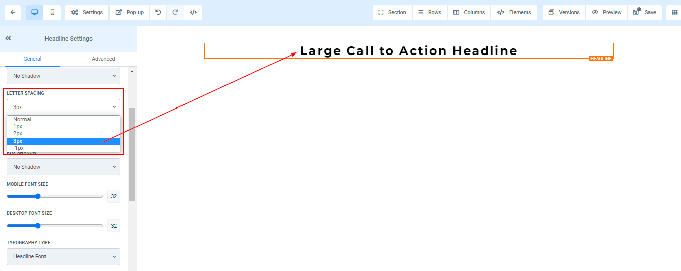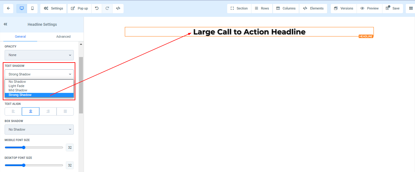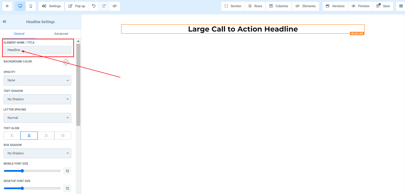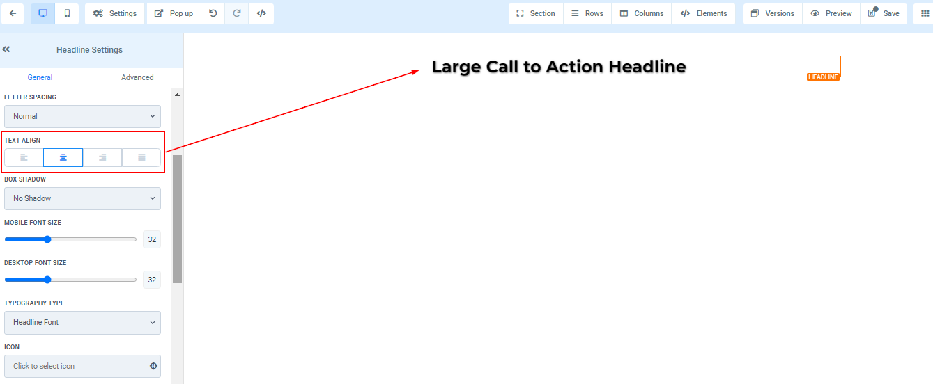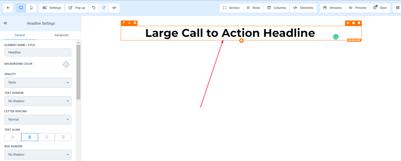 To add a Headline, drag and drop the Headline in the editor’s space to manage the settings.