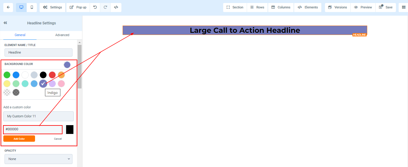 If you want to change the background color of your headline, you can do that by clicking on the content you want to adjust its background.