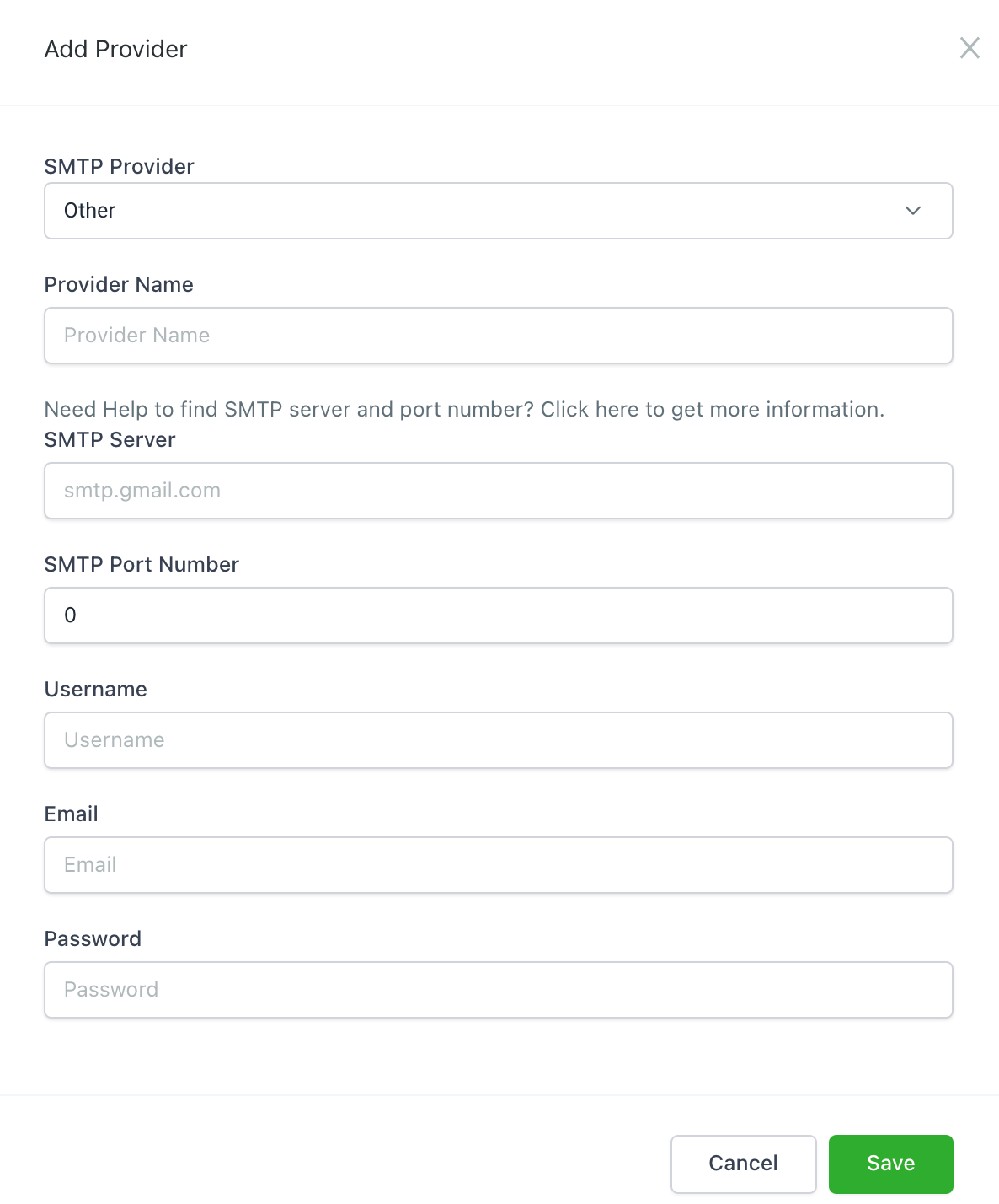 - Use the following link to determine the SMTP Provider and SMTP Port Number specific to the service you are integrating. Use outbound options (not inbound): https://www.arclab.com/en/kb/email/list-of-smtp-and-imap-servers-mailserver-list.html