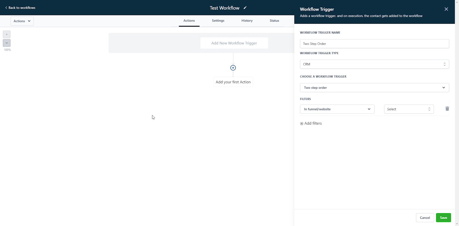 - Save the Workflow.