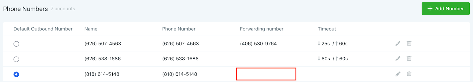 Step 1: Under Settings > Phone Numbers leave the “Call Forwarding” number blank.