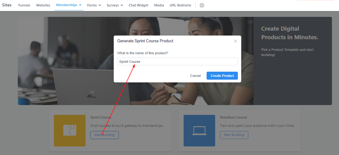 ​You can decide to use the templates provided (Sprint, Marathon, and Membership) or build your course from scratch. The process of creating these courses is all the same.