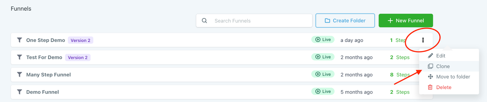 You may want to clone a funnel or website from time to time. This can be useful if you are copying information and want to create a similar funnel or website, but rather than starting from scratch, you may just want to make a few adjustments.