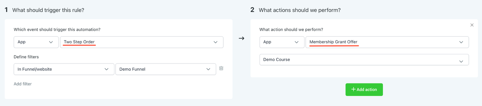 Option 1: Create a trigger based on two-step checkout that grants access to the offer.