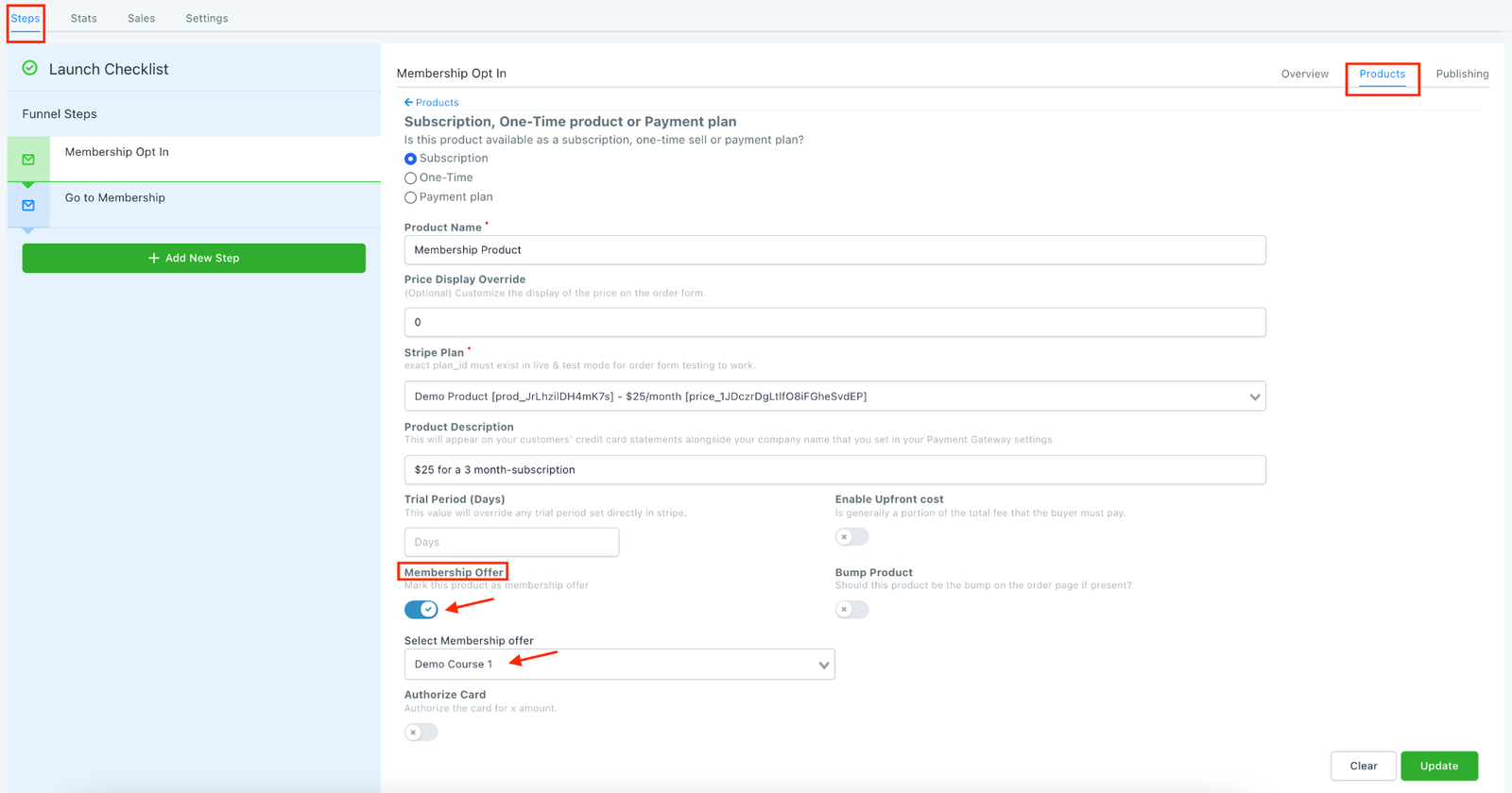 Option 2: Toggle on the Membership Offer option in the funnel product settings.