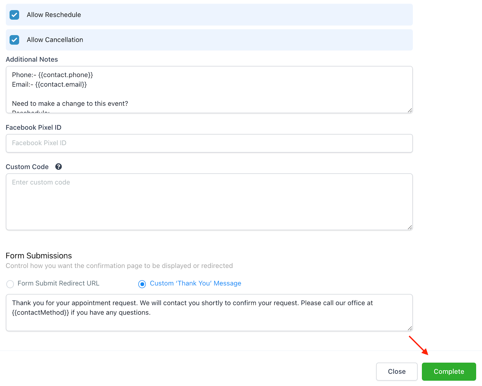 - Make any additional changes or updates, and click Complete.