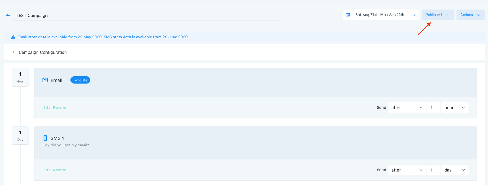 Once you have created your campaign, ensure that it is changed from draft to published, in order for it to run.