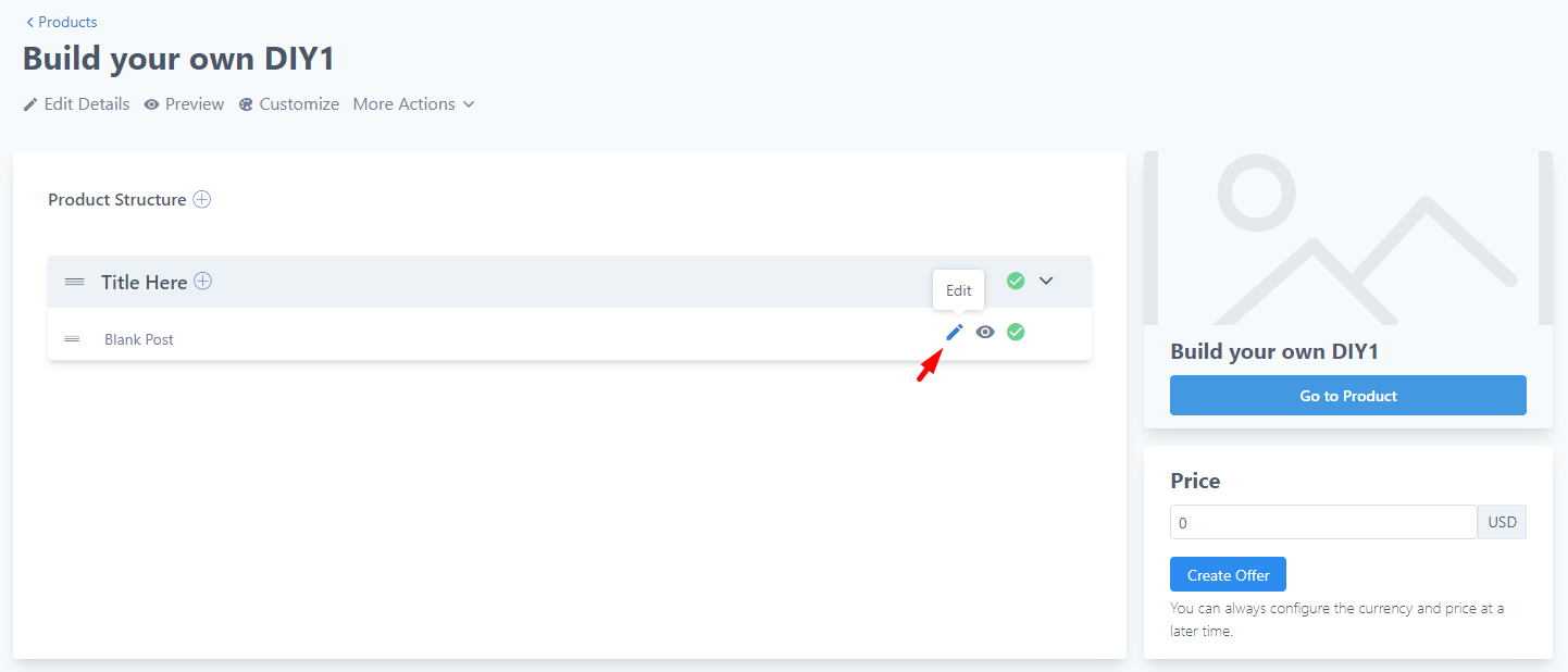 - Click the Edit icon next to the “blank post” placeholder.
