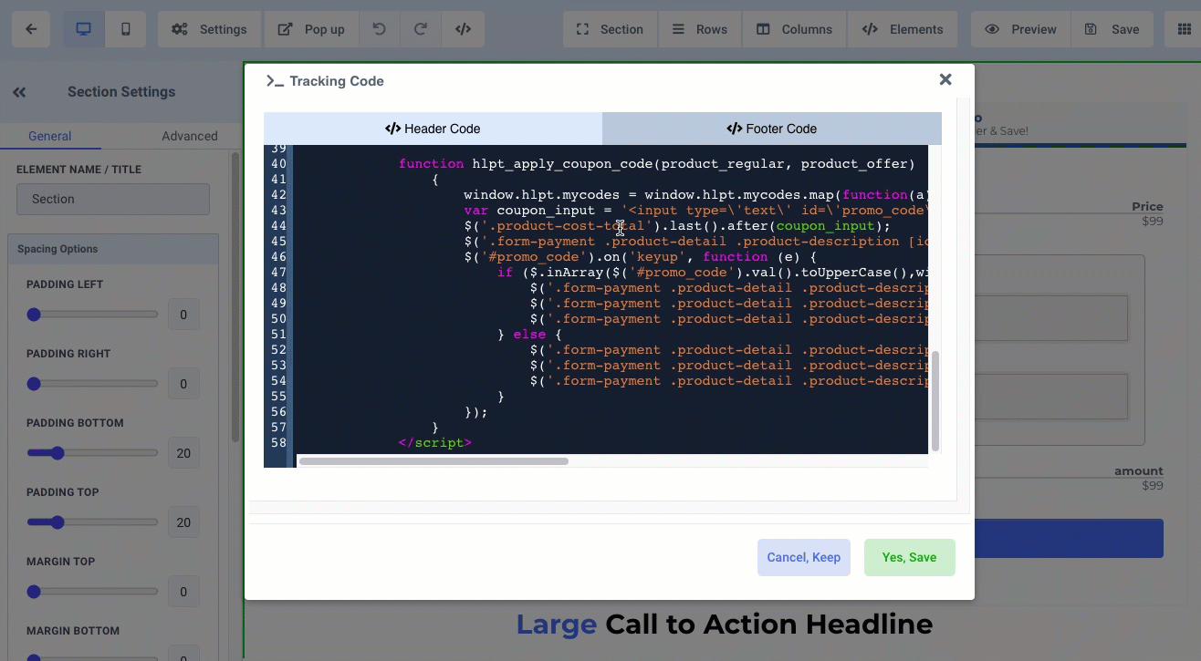 Step 3: Select Footer Code