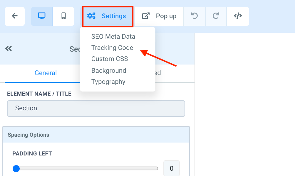 Step 2: In Settings, click on Tracking Code