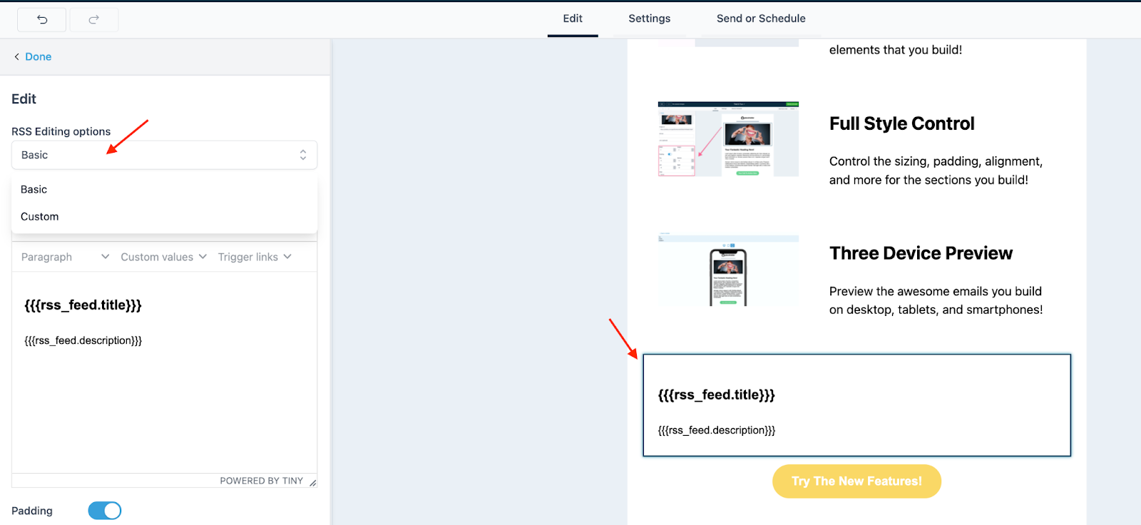 Follow these steps to edit the Headers and items using both “Basic” and “Custom” options.