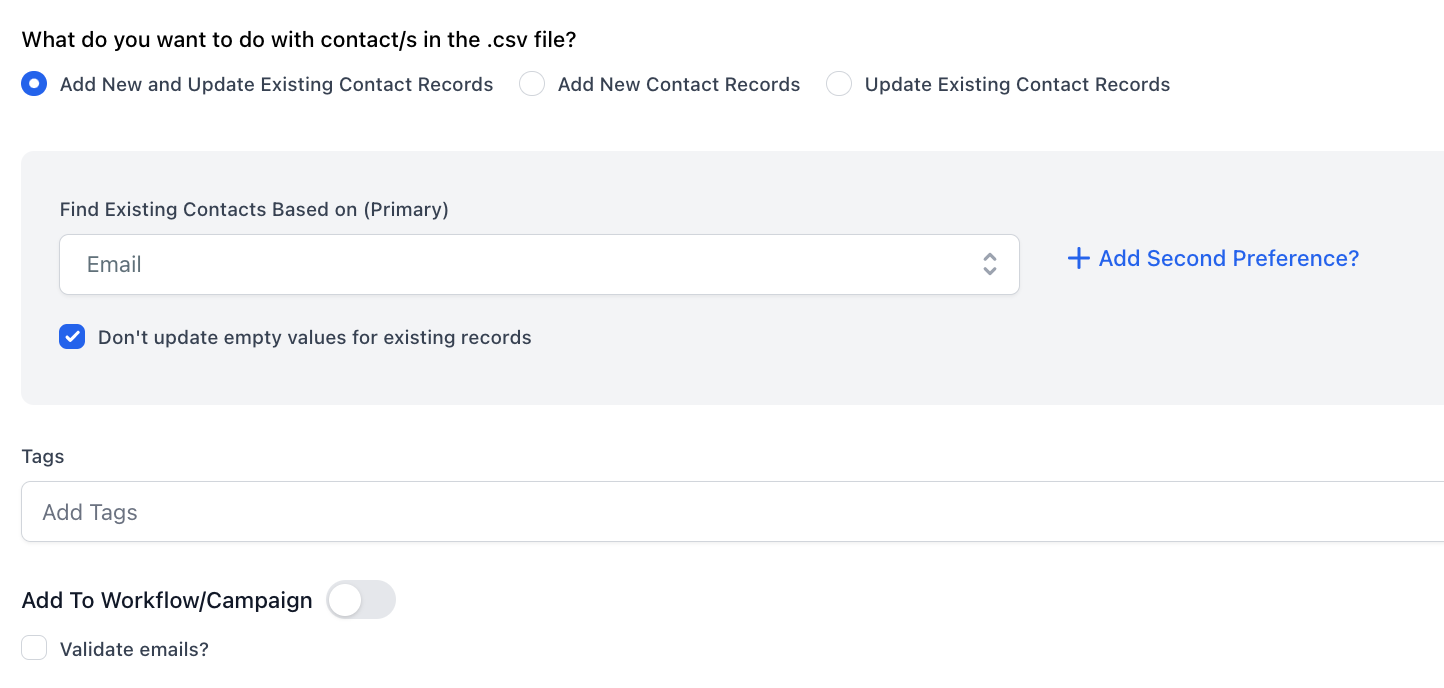 - Toggle on the “Add to Workflow/Campaign” if you wish to do so, and then choose the Workflow or Campaign to add the list to.