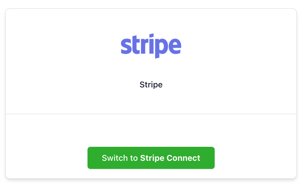 • Click “Switch to Stripe Connect” and you’ll be redirected to the “get started” page.