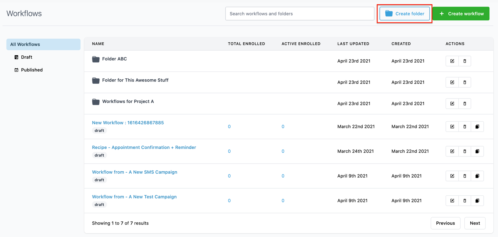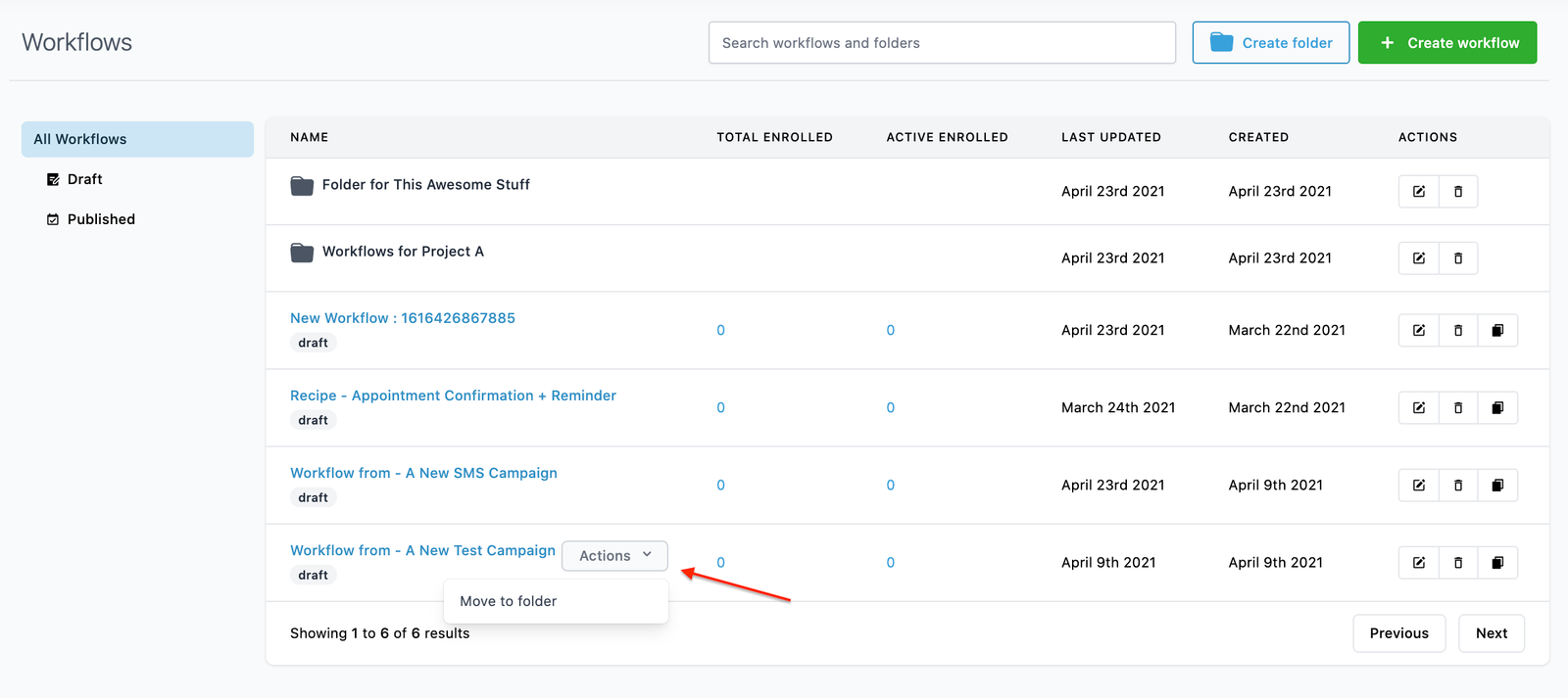 When using workflows, you may want to categorize them to stay organized. Using the Workflow Folders feature will help you stay organized.