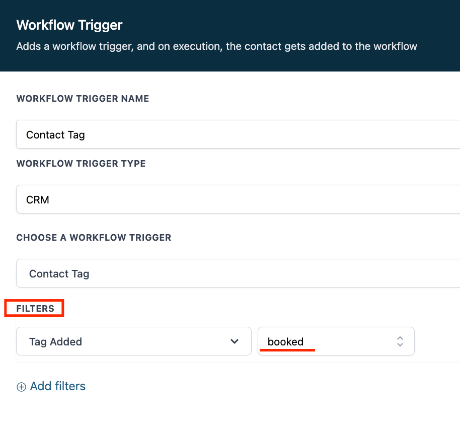 - NOTE: If you do not specify a certain tag, this will run on any contact tag. It’s important to choose the appropriate tag for your business use. Do you want the workflow to run off a tag based on appointment bookings? Or maybe a tag that you added to a marketing list of contacts you imported into your system? Choose that appropriate tag here.