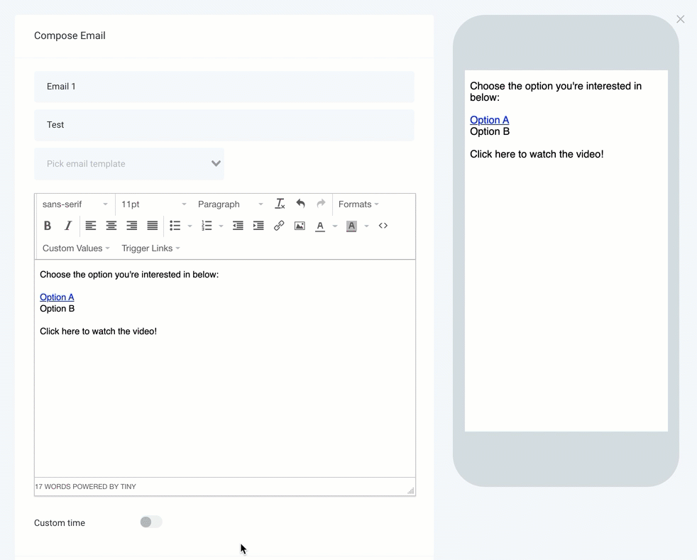 Trigger links can be built in the system so that when a lead/customer clicks on a particular link, a specified action happens. There are multiple ways to use trigger links, most commonly in campaigns, emails, funnels, and websites.