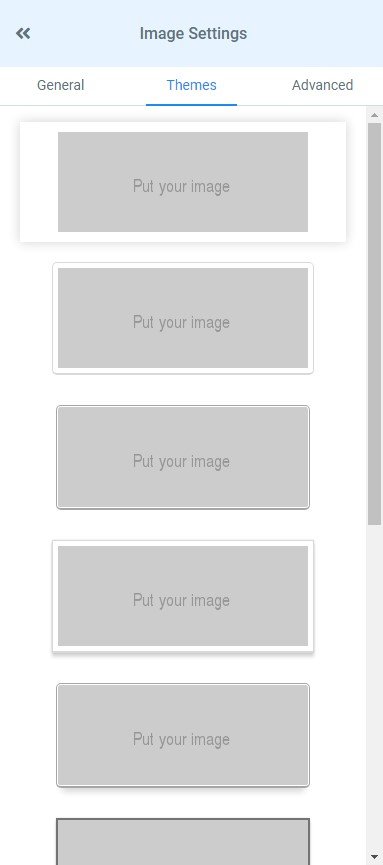 - Adding themes to images applies preset design features such as borders, drop shadows, and rounded corners. This is a quick way to customize the image element if you do not need to tweak any other settings of the theme.