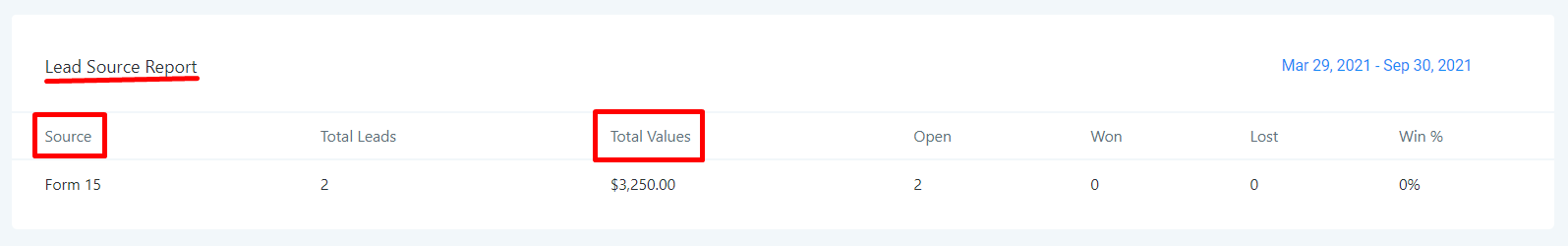- Lead Source Report: Here you can see where your leads came from and what their values are.