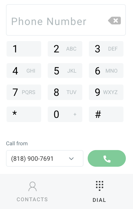 - Choose the phone number you want to call from (limited to the numbers you have set up in settings) and then type in the phone number you want to call. Click Call.
