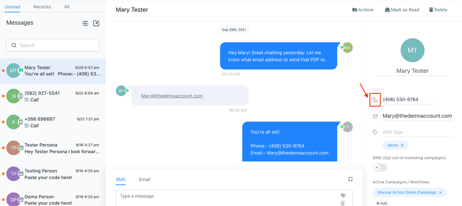 Step 3: One-Time Calls from the Conversations Section